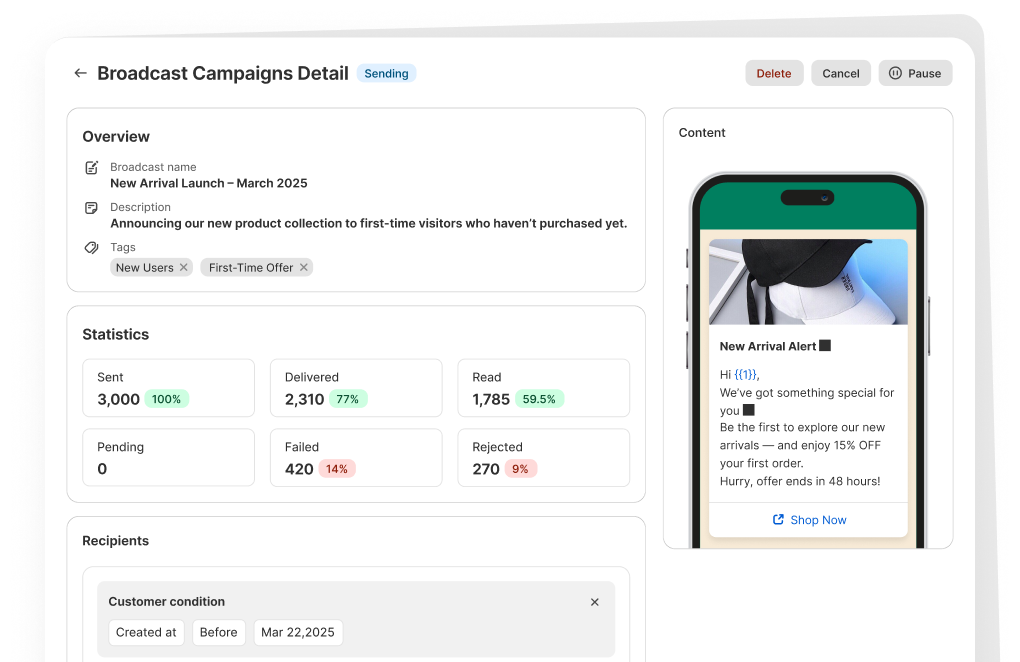 Use WhatsApp to recover lost sales, build loyalty, and grow revenue — automatically.